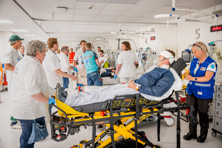 In Hongarije raakten 200 militairen zogenaamd gewond. Dertig daarvan werden deze week via vliegveld Eindhoven naar het Calamiteitenhospitaal in het UMC Utrecht gebracht voor behandeling. Zo startte Vigorous Warrior, de grootste geneeskundige oefening van de NAVO, voor het Calamiteitenhospitaal, al 25 jaar een samenwerking tussen het Ministerie van Defensie, het UMC Utrecht en het Ministerie van Volksgezondheid, Welzijn en Sport.