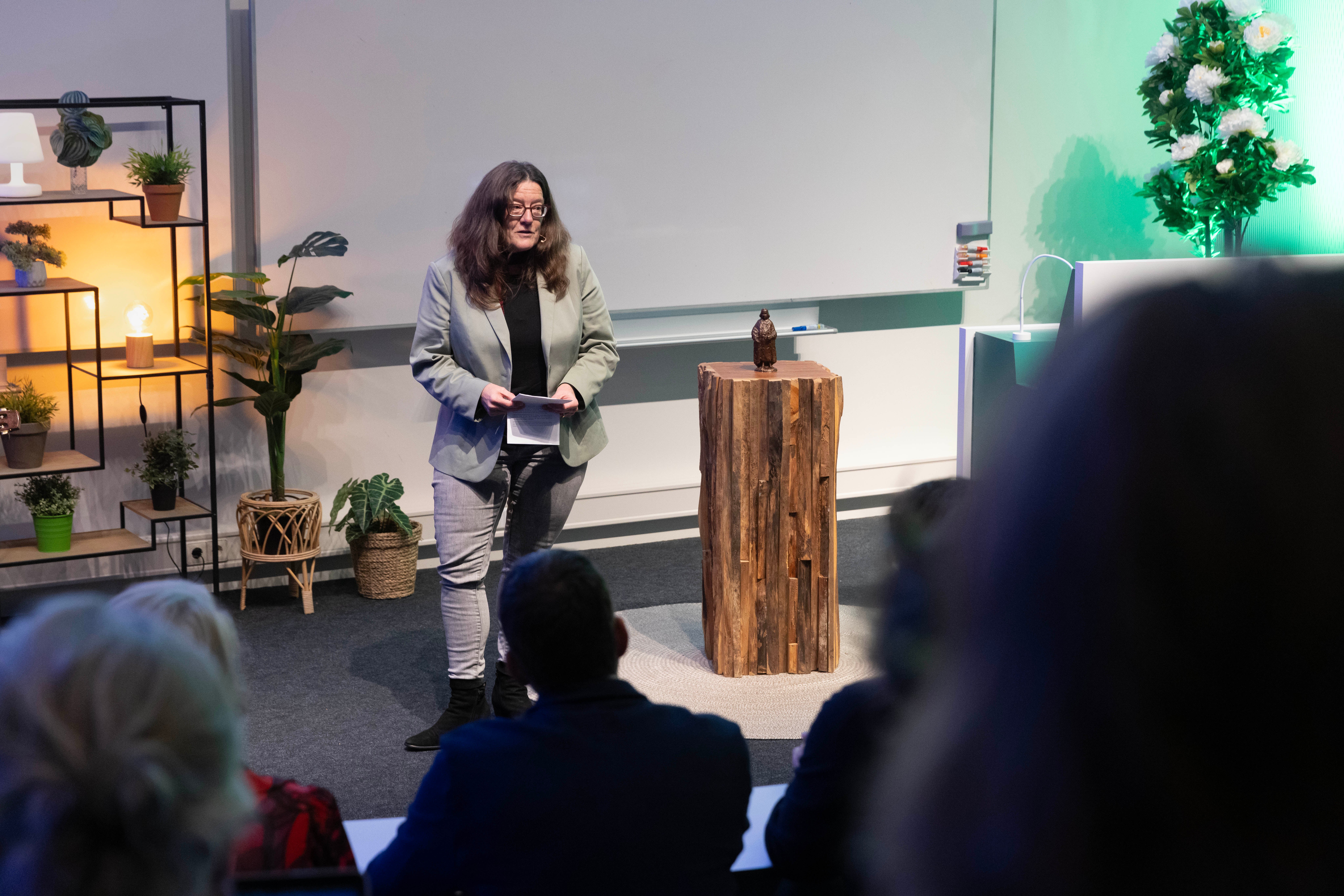 “In de afgelopen 5 jaar heb ik op verschillende vlakken met Ralph Wijnhoven mogen samenwerken. Wat begon tijdens de COVID-19 epidemie met het TeleTriageTeam als eerste samenwerking tussen een paramedische opleiding, in dit geval optometrie, en een medisch specialisme, de oogheelkunde van het UMC Utrecht is uitgemond in een succesvolle en zeer waardevolle samenwerking met wederzijds vertrouwen”, zo vertelde Sigrid Mueller-Schotte van de Hogeschool Utrecht tijdens de feestelijke prijsuitreiking.
