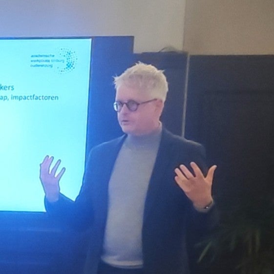Hamers illustreerde zijn verhaal met tastbare voorbeelden: het terugdringen van vrijheidsbeperkende maatregelen in verpleeghuizen, de rol van academische werkplaatsen tijdens COVID‑19 en het openen van verpleeghuisdeuren vanuit een mensgerichte visie op risico’s.