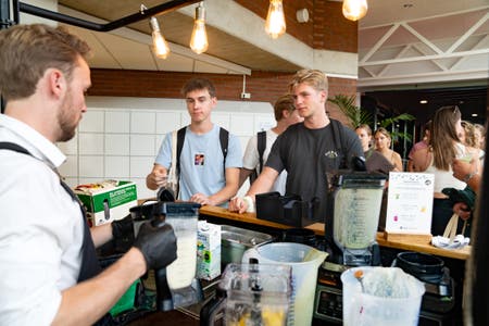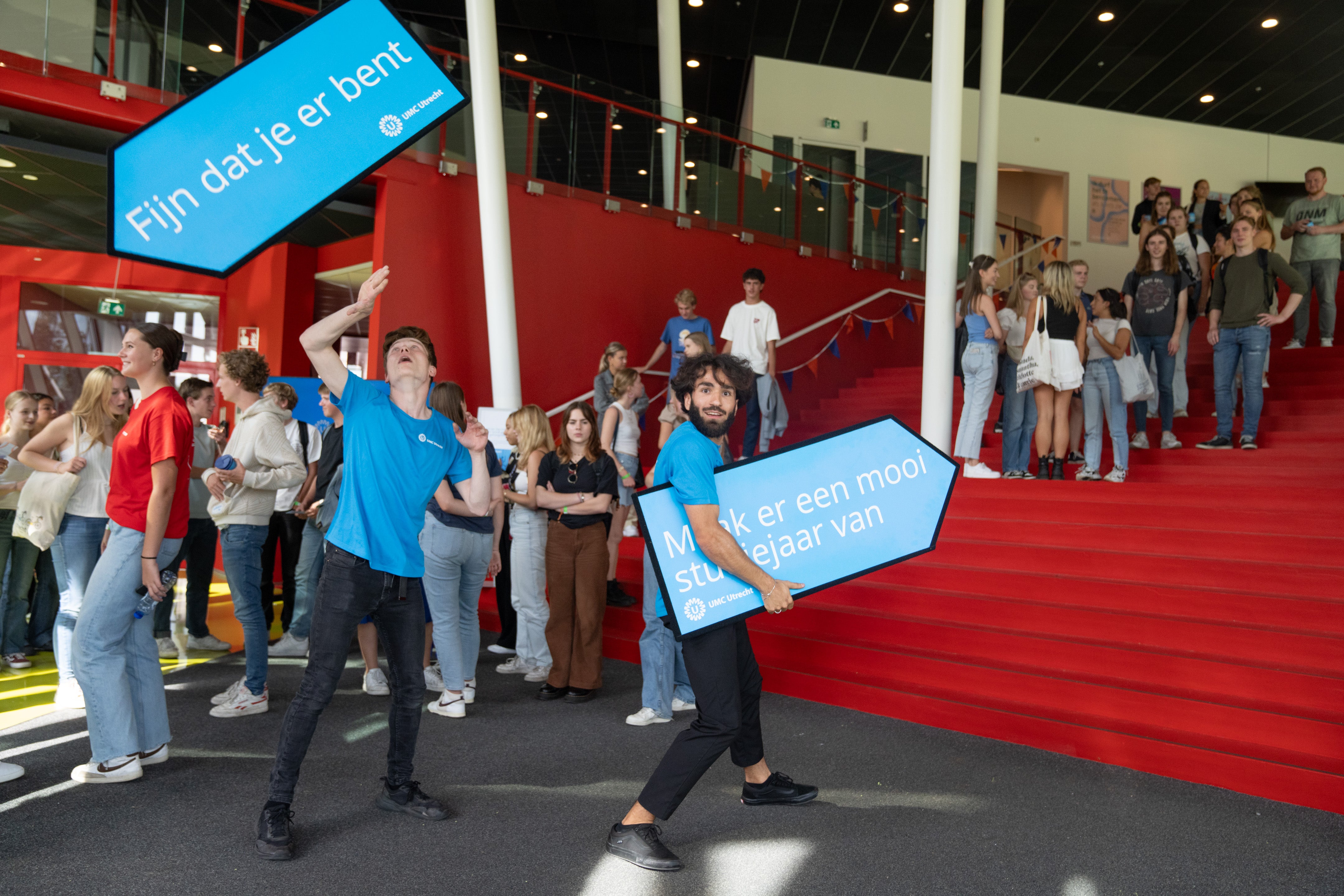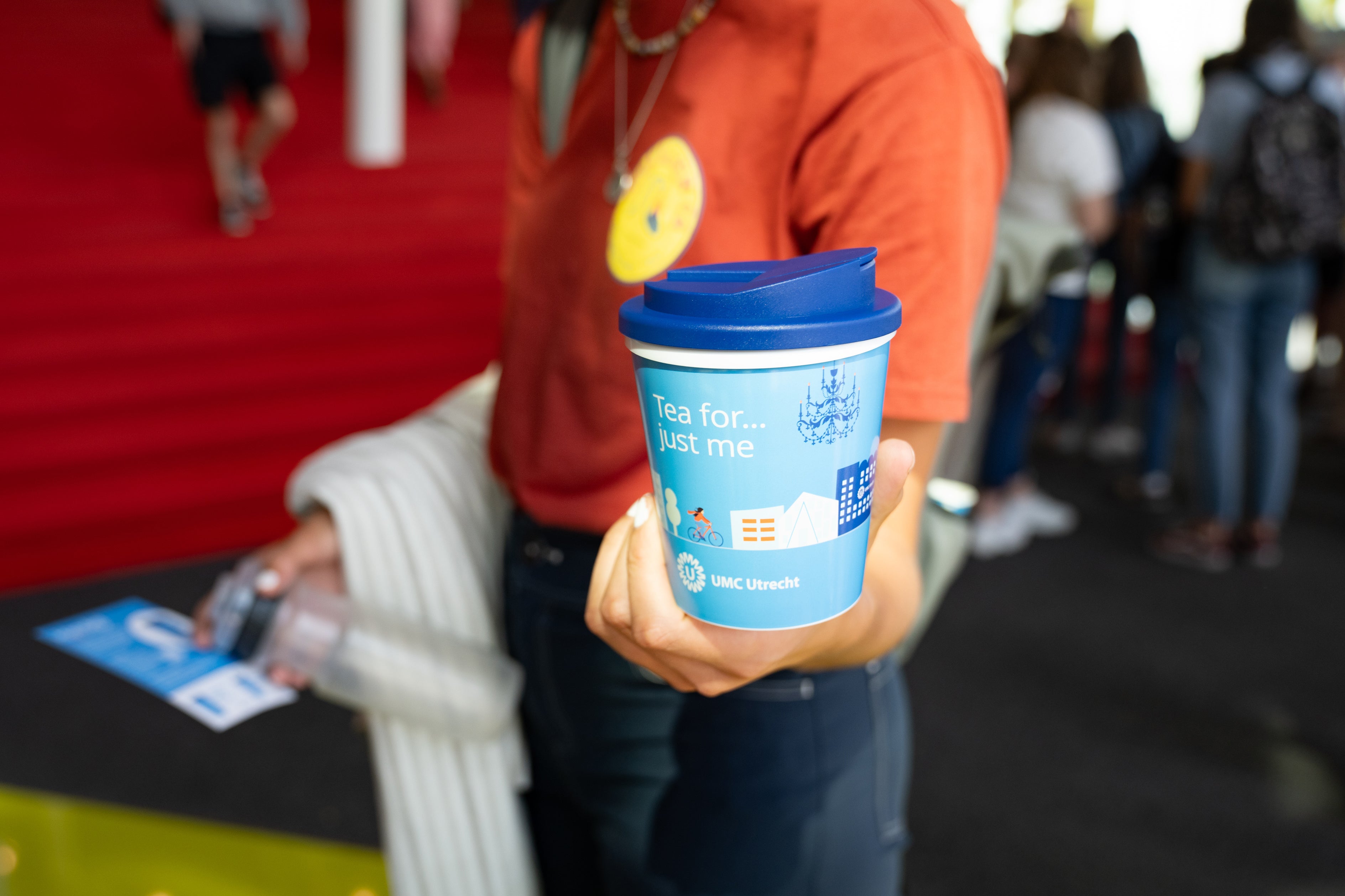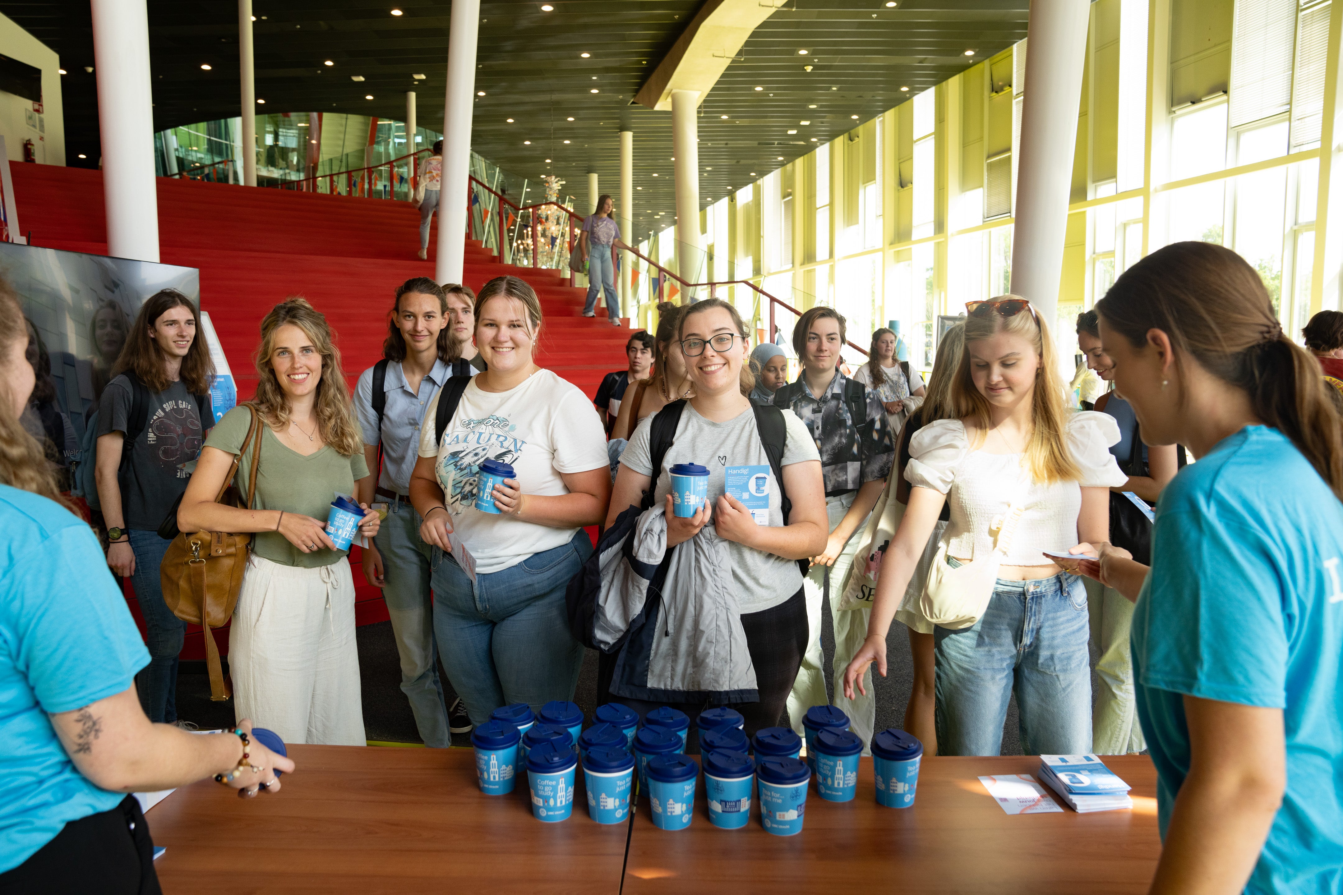 Het Onderwijscentrum ontvangt op maandag 4 en dinsdag 5 september 2023 alle studenten – waarvan zeshonderd eerstejaarsstudenten - op feestelijke wijze met ‘sign jugglers’, muziek, smoothies en koffie. Koffie in een handige, duurzame beker ‘to go’. Het Onderwijscentrum loopt hiermee vooruit op het verbod op wegwerpbekers dat per 1 januari 2024 ingaat voor openbare gebouwen, dus ook in het UMC Utrecht. Ook is er aandacht voor de vernieuwde webpagina Student Centraal, waar studenten alles vinden over studeren in het UMC Utrecht.